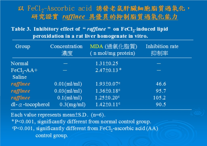 證實 raffinee 具抑制脂質過氧化能力。