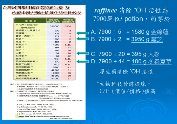 2. raffinee 清除 OH 活性為7900單位/ potion