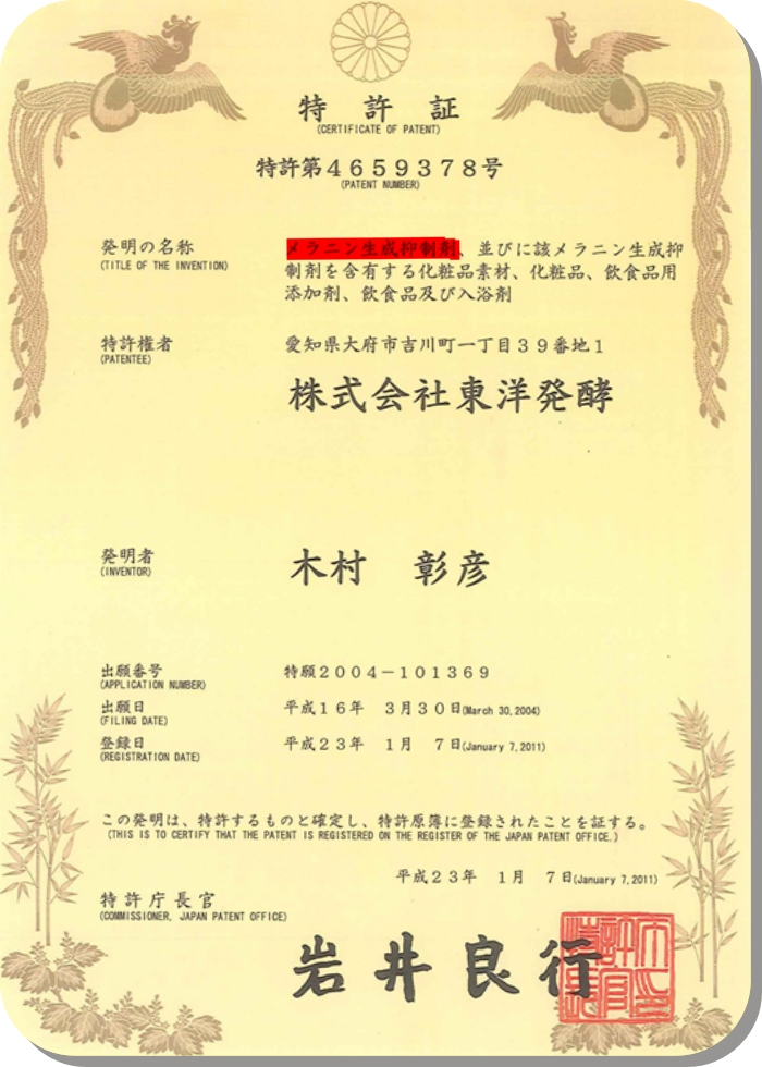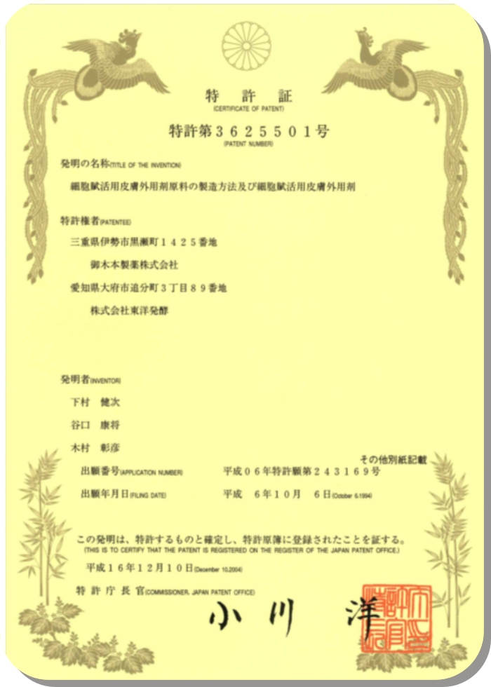 SOD 樣作用食品專利證書