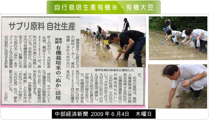 東洋發酵自行栽培生產有機米、有機大豆,