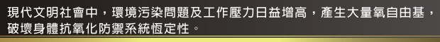 當體內總抗氧化能力(體內天然抗氧化防禦系統及從食物中所補充的抗氧化物質)無法清除多餘氧自由基時,